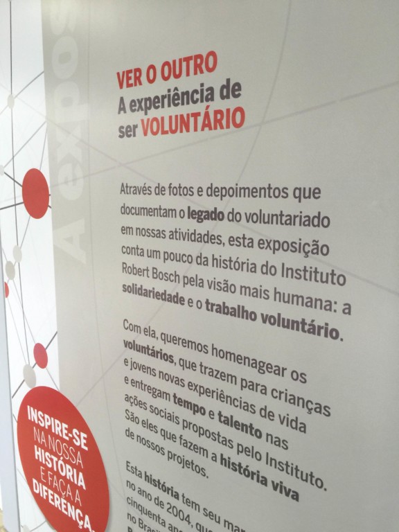 Através de fotos e  depoimentos que documentam o legado do voluntariado em atividades, a exposição conta um pouco da história do Instituto Robert Bosch pela visão mais humana: a solidariedade e o trabalho voluntário.
